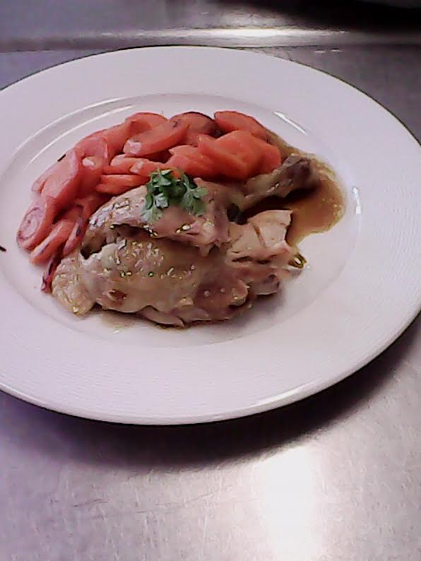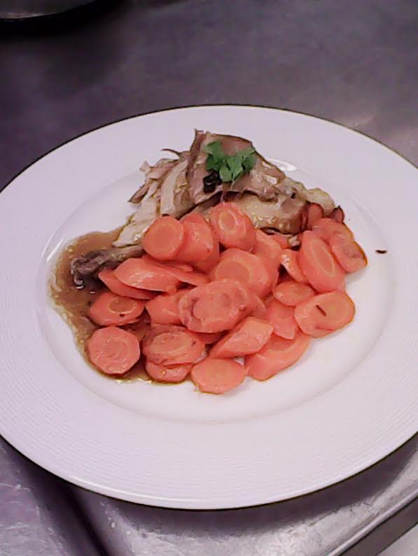 Poulet rôti à la sauge, carottes glacées **